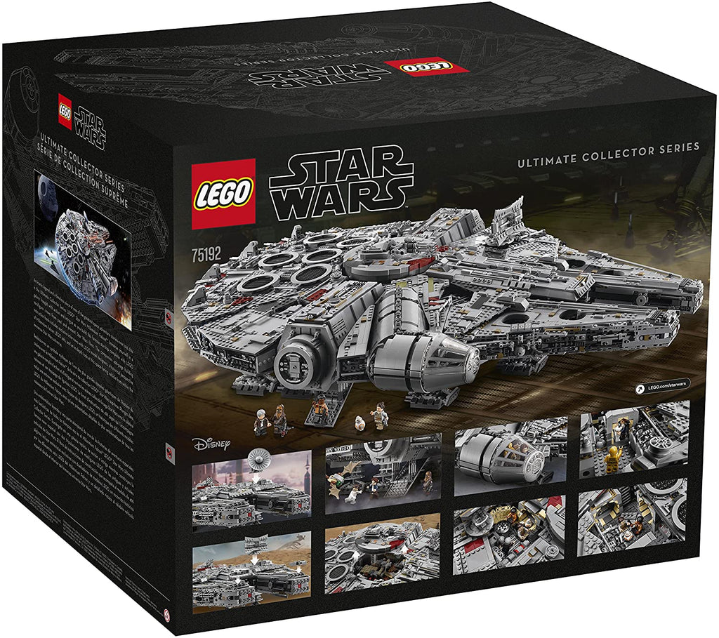 Welcome to the largest, most detailed LEGO® Star Wars Millennium Falcon model we’ve ever created—in fact, with 7,500 pieces it’s one of our biggest LEGO models, period! This amazing LEGO interpretation of Han Solo’s unforgettable Corellian freighter has all the details that Star Wars fans of any age could wish for, including intricate exterior detailing, upper and lower quad laser cannons, landing legs, lowering boarding ramp and a 4-minifigure cockpit with detachable canopy. Remove individual hull plates to reveal the highly detailed main hold, rear compartment and gunnery station. This amazing model also features interchangeable sensor dishes and crew, so you decide whether to play out classic LEGO Star Wars adventures with Han, Leia, Chewbacca and C-3PO, or enter the world of Episode VII and VIII with older Han, Rey, Finn and BB-8!