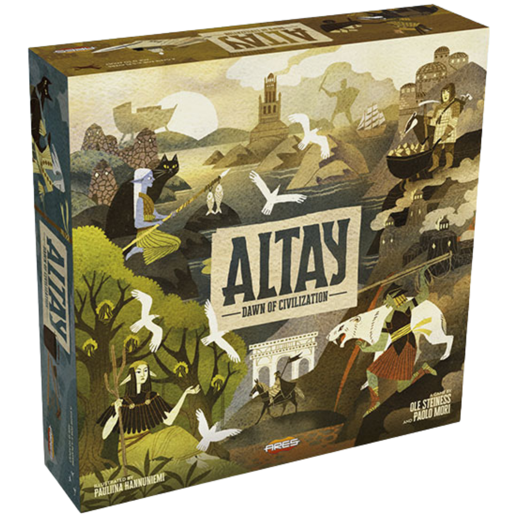 Altay: Dawn of Civilization is a deck-building civilization game, set in a mythic age. In a secluded region within a vast continent, four mysterious societies have cultivated distinct cultures over countless years, maintaining a fragile balance. They now confront a new challenge: the influx of human settlers with advanced crafts and weapons.